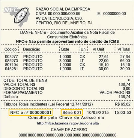 A Nota Fiscal do Consumidor Eletrônica é o modelo que substitui o cupom fiscal físico.